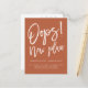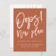 Oups ! Nouveau plan, Modern fun décontracté script mariage changer la date avec une typographie de style manuscrit, toutes les couleurs sont modifiables, avec un blanc simple et minimaliste pour annoncer le report de votre mariage et de nouveaux plans avec la tonalité terre boho terracotta.