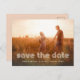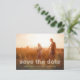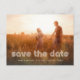 Ces mariages élégants et tendance sauvegardent les cartes postales datées présentent une typographie de style disco rétro comme une superposition sur une de vos photos personnelles. Le dos a un arrière - plan de couleur beige neutre avec un texte brun terreux assorti, ainsi qu'un code QR scannable pour ajouter votre site mariage. Un look vintage et totalement moderne.