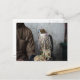 Carte postale d'un faucon bandeau utilisé pour le fauconnerie sur la chaussure d'un fauconer à Doha, la capitale du Qatar, le pays du Golfe.