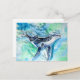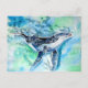 peinture à l'aquarelle traditionnelle de l'apparition fantomatique d'une baleine à bosse en aquarelles bleues sur une carte postale.