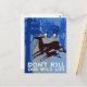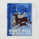 Poster WPA vintage bleu et gris avec une voiture voyageant la nuit avec des phares illuminant deux cerfs courant sur la route. En bas "Ne tuez pas notre vie sauvage"