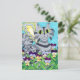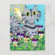Cette belle petite fée de chat rayée de gris est assise dans un champ rempli de fleurs charmantes communément appelées sauts-up Johnny, également appelées pansies sauvages. L'ensemble est dressé contre un ciel bleu printanier sans nuages et entouré d'une bordure détaillée assortie aux couleurs des fleurs.