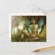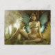 Carte fantastique avec une belle fée dans un costume doré assise sur un rocher dans la forêt magique.