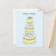 Un gâteau mariage design à plusieurs niveaux, dressé contre un arrière - plan bleu pâle. Les mots 'Today et Forever' sont écrits en espagnol au-dessus de l'image du gâteau.