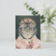 Carte Postale Femme couronne roses chat