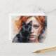Femme et son chat noir, Carte postale, Carte postale, Carrefour postal, Carrefour postal, Femme, portrait, aquarelle, contenu générationnel, Génération IA, chat, carte postale animale, chat noir Belles couleurs