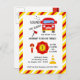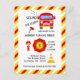 Invitation d'anniversaire de pompier avec une mise en page simple en noir et blanc personnalisable selon vos spécificités. Graphiques par PremiumClipart.