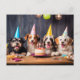 Joyeux Anniversaire Célébration Colorée, conception décorative avec ballons de fête et gâteau d'anniversaire. Quatre chiens portant chapeaux de fête,