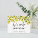 Ce script moderne fun citrons aquarelle nuptiale changement de date carte peut être personnalisé avec vos informations de report. Le verso contient des détails supplémentaires, y compris votre site Web, avec votre adresse de retour et l'espace pour l'adresse de votre destinataire. Une façon parfaite de tenir vos invités informés. Conçu par Thisisnotme©