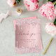 Une carte de remerciements pour une Fête des mariées. Un faux arrière - plan rose vif à l'allure métallique. Avec des gouttes de fausse parties scintillant, la peinture goutte à goutte. Sur l'avant, script écrit et texte : Merci, votre texte, titre et une date. Retour : Personnalisez et ajoutez Votre note de remerciement et votre nom.