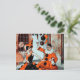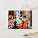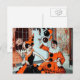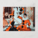 Illustration vintage de la fête d'Halloween en orange et noir avec une femme en costume de sorcière et un homme en costume de clown