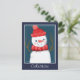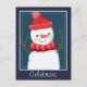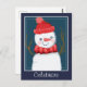 numériquement bonhomme de neige de couleur en rouge foulard rayé et casquette tricoté rouge. Il y a une petite forme cardiaque sur sa branche. Options de texte réglables à l'avant et à l'arrière de la carte. Oeuvre de Valarie Wade.