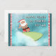 Carte de vacances de Noël créative avec surf de Père Noël amusant et jeu de mots de Noël.