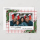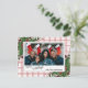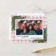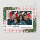 Unique, classique, tendance, jolie et décorative Carte de vacances. Joy Holidays salue le texte et l'espace pour customiser ou personnaliser avec une photo, nom de famille (ou noms individuels) et message de votre choix. encadré de baies rouges de vin de Bourgogne et de bouquets de fleurs vert foncé sur un élégant cottage de campagne français rouge et blanc corail en vichy vérifiez l'arrière - plan.