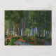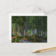 Un stand d'arbres par beau temps. Les grands arbres sont grands et sombres, mais les jeunes pousses en dessous ont une nouvelle croissance lumineuse. En grandissant à travers les feuilles déchus sont le vert et rose et blanc de trèfle et d'autres couvertures de sol.