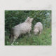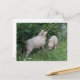 Cette jolie carte postale présente une photo d'une paire de mignons moutons moelleux. Les moutons sont entourés de fleurs sauvages et d'herbe longue, et se tiennent sous un arbre et s'approchent, mangeant avec cupidité quelques feuilles. Ils ont des épais manteaux blancs en laine et des visages très mignons.