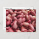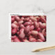 Cette carte postale est ornée de fèves de canneberge à motifs, fraîchement cueillies et décorées. Les haricots de canneberge sont connus sous plusieurs noms tels que les borlotti, les haricots horticoles français ou simplement des haricots à coquille ordinaire. Ils obtiennent leur nom de leur apparence vernicolée. Elles sont généralement blanches, roses ou crème avec des marques de rouge profond ou de canneberge qui sont distribuées dans différents motifs sur le haricot. Ils ont une saveur douce qui est un peu comparable aux noix.