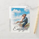 Une simple photographie avec un script moderne et élégant annonçant votre Fiançailles au-dessus du haut. La photo est facilement changée en votre propre photo personnelle. La photo au verso apparaîtra comme dans l'exemple. Le texte à l'envers est facilement changé pour vous-même.