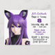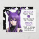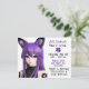 Invitations d'anniversaire de la fille. Vidéo mauve et noire avec des oreilles de renard et des graphismes étoiles.