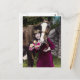 Au début des années 1900, les cartes photo réelles étaient très en vogue. Les chevaux étaient fréquemment utilisés dans les séances photo mises en scène pour dépeindre la romance et le luxe. Ici, nous avons une dame en robe violette et fleurs tenant un cheval alezan avec une large liste. Ceci est numérisé à partir d'une authentique carte postale vintage teintée à la main, puis retouchée et améliorée pour la ramener à son ancienne gloire.
