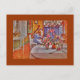 Aquarelle représentant une petite fille travaillant dans un métier à tisser avec Cactus de Noël au premier plan. "1914 Intérieur avec Cactus" peinture Vintage de l'artiste suédois Carl Larsson.