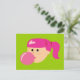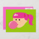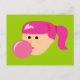 Carte Postale Fille de gomme à bulle rose
