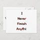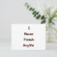 Un texte drôle qui ne manquera pas de faire sourire tout le monde. Le texte dit : Je ne finis jamais rien.Un grand cadeau pour la famille, les amis ou même pour vous-même! Vous pouvez customiser ce produit en ajoutant votre propre texte, photo ou changer la couleur arrière - plan ! Cliquez simplement sur le bouton "customisez-le" pour créer votre produit unique !