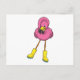 Carte Postale Flamant rose à la pluie avec bottes en caoutchouc