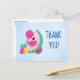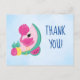 Une fête merci carte postale une jolie illustration d'un flamant rose avec quelques pastèques et ananas. Couleurs rose et vert. L'été et tropical. L'arrière - plan est bleu clair. Message personnalisé à l'arrière.
