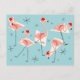 Un décor de Noël animé et décalé avec une touche rétro, avec des flamants roses portant des chapeaux de Père Noël, des formes géométriques crème et des étoiles sur un arrière - plan bleu (changement de couleur). Un design personnalisable pour personnaliser avec votre propre texte, images et idées. Image d'art numérique originale créée par QuirkyChic.