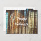 Je vous souhaite de bonnes vacances ! Carte postale de style rétro avec une photo de lumières d'hiver jaunes et bleues, dansant sur arrière - plan brun. Le texte à l'avant et à l'arrière est modifiable. Vous pouvez aussi ajouter votre "timbre" : une petite photo à l'arrière.
