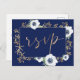 Carte Postale Fleur d'anémone bleu marine Mariage choix de repas