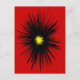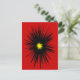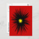 Cette carte postale présente un design abstrait dramatique d'une fleur noire avec un centre jaune doré sur un arrière - plan rouge écarlate.