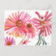 Aquarelle, crayon coloré et dessin à l'encre de maîtres violets dans un style qui rappelle les imprimés botaniques. Ces dessins sont amusants et imaginatifs. Ils se reproduisent magnifiquement sur les cartes et autres papiers à lettres imprimés. Ces marguerites roses sont dessinées dans un esprit animé, chaleureux et coloré