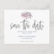 Faites savoir à vos invités que vous allez vous marier bien à l'avance afin qu'ils puissent garder la date libre, en leur envoyant une carte postale pratique par la poste. Ce design simple mais élégant comporte "Save The Date" dans une typographie grise script stylisée et le reste du texte serif est facilement personnalisable avec vos propres détails. Un petit motif de fleurs aquarelles translucides dans des nuances de rose et de lilas est situé en haut. Pour gagner du temps à écrire les noms et adresses de vos invités à la main, vous pourriez également envisager nos autocollants individuels de nom et d'adresse d'invité pour vos envois de mariage disponibles dans cette collection.