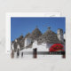 Carte Postale Fleurs de géranium et maisons de trulli à Alberobe