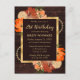 Magnifique conception florale de fleurs automnales aquarelles rustiques orange brûlé sur un fond en bois brun avec une bordure en feuille d'or
