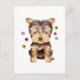 Une séance mignonne de chiot de Yorkshire Terrier, avec six fleurs brillamment colorées autour de elle. Trois sur chaque côté. Un grand cadeau pour chacun qui aime un Yorkie.
