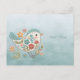 Carte postale Fleurs roses bleues de petit oiseau