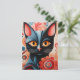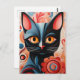 Un adorable chat noir avec des fleurs blanches roses et bleues L'art généré par l'IA