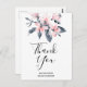 Carte Postale Fleurs roses et gris Merci d'aquarelle classique