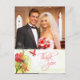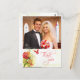 Cette carte postale élégante en Merci Mariage a un design floral rouge et vert aquarelle avec deux papillons volant en bas à gauche. Au fond, il y a une silhouette gris et molle de quelques fleurs de nénuphars. Dans l'arrière - plan, il y a un look doux vert en détresse. En haut, vous pouvez facilement customiser ceci avec votre photo. En bas à droite, le Merci est écrit dans une police tourbillon tendance. Sur le dos, vous pouvez facilement personnaliser le message de remerciement avec les noms de la mariée et du marié et la date de la cérémonie mariage. C'est une façon abordable de dire Merci à tous vos amis et votre famille qui ont participé à votre mariage.