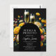 Entrez dans un monde d'élégance et d'effervescence avec notre invitation de fiançailles Petals & Prosecco. Mélangeant parfaitement la vivacité de fleurs vibrantes avec l'éclat du prosecco, cette invitation plante le décor pour une célébration inoubliable. Le fond riche et sombre met en valeur l'arrangement floral lumineux, créant un contraste saisissant, tandis que l'éclat des verres à prosecco ajoute une touche de glamour festif. Le nom de la future mariée est écrit de manière fantaisiste, ajoutant un charme personnalisé au milieu des détails de la police serif sophistiquée qui décrit l'événement. Cette invitation est idéale pour une fête de fiançailles qui promet des rires, de la beauté et un toast aux nouveaux départs.