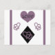 Le coeur noir et violet forme le motif, avec des formes diamant (arlequin), décorent cette carte postale cool et blanche ! Le mot "amour" apparaît dans les coeurs pourpres, écrit en noir, et il y a des rayures violettes sur les côtés de la carte postale ! Ce serait parfait pour la Saint-Valentin, les anniversaires, les mariages ou les anniversaires ! Formes de diamant et Coeurs "Amour" Motif © 2019 Regina Blankcitizen.