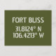 Coordonnées de la carte de latitude et longitude pour Fort Bliss, police blanche de style crayon El Paso TX sur arrière - plan vert Armée.