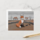 Colourful artwork of a fox in the English countryside, with old timber-framed houses in the background. Perfect for anyone who loves folk art.