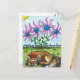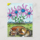 Ce petit renard fait une sieste près d'un bosquet de fleurs roses et bleues sous un ciel ensoleillé. Cette illustration a été créée par Christina Wedberg sur papier d'aquarelle à presse froide avec stylo & encre et aquarelles.
