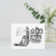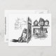 Un renard a l'oreille pressée contre le trou de la porte de la serrure où les poulets rôdent dans cette illustration antique d'un livre pour enfants de 1899.