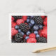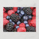 Cette carte postale fruitée semble tout simplement délicieuse avec des piles de bleuets, de framboises et de mûres que l'on vient de cueillir dans la brousse.