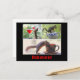 Carte postale d'écureuil drôle avec trois photos d'écureuils dans différentes poses et le dicton, "Les boissons sont sur moi !" Le collage est fait d'une photo d'un écureuil buvant un cocktail d'une paille, d'un écureuil assis sur une théière, et d'un écureuil avec sa tête dans une tasse de café.